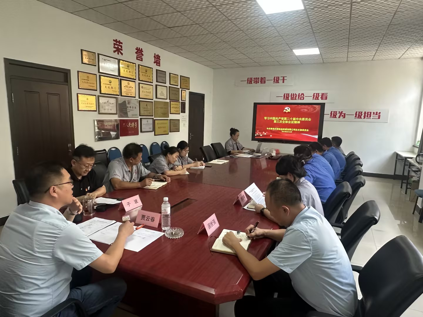 2024年8月15日,日清黨總支書記賈云春帶領(lǐng)全體黨員干部開展“中國共產(chǎn)黨第二十屆中央委員會第三次全體會議”精神學(xué)習(xí)。中共二十屆三中全會通過的《決定》擘畫了進一步全面深化改革、推進中國式現(xiàn)代化的宏偉藍圖。對此,黨員干部們有深刻學(xué)習(xí)體會,新時代新征程的“趕考”之路遠未結(jié)束,日清公司廣大黨員干部要時刻保持清醒和堅定,埋頭苦干、勇毅前行,堅定不移地按照二十屆三中全會精神指引,著力打造忠誠、干凈、擔(dān)當(dāng)?shù)倪^硬隊伍,不斷開創(chuàng)工作新局面,為日清公司的發(fā)展貢獻一份力量。